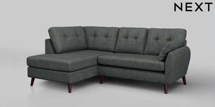 6.12.1 Buy Wilson Buttoned Back Medium Corner Chaise - Left Hand Cotswold Chenille Dark Grey Retro Tapered - Dark Brown from the Next UK online shop Click here to use our accessible website