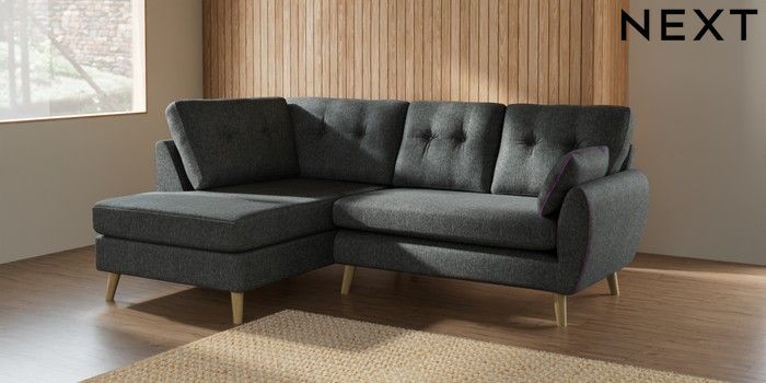 7.2.10 Buy Wilson Buttoned Back Medium Corner Chaise - Left Hand Cotswold Chenille Dark Grey Retro Tapered - Light from the Next UK online shop Click here to use our accessible website