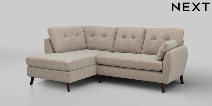 6.12.1 Buy Wilson Buttoned Back Medium Corner Chaise - Left Hand Cotswold Chenille Light Natural Retro Tapered - Dark Brown from the Next UK online shop Click here to use our accessible website