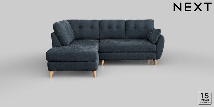 6.11.4 Buy Wilson Buttoned Back Medium Corner Chaise - Left Hand Distressed Velour Midnight Blue Retro Tapered - Light from the Next UK online shop Click here to use our accessible website