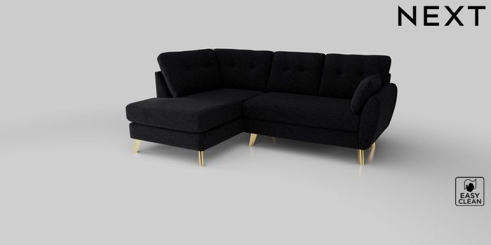 6.12.1 Buy Wilson Buttoned Back Medium Corner Chaise - Left Hand Fine Chenille Easy Clean Black Metal Tapered - Gold from the Next UK online shop Click here to use our accessible website