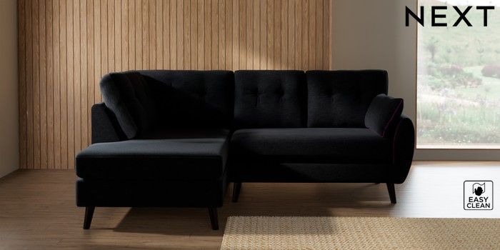 7.3.1 Buy Wilson Buttoned Back Medium Corner Chaise - Left Hand Fine Chenille Easy Clean Black Retro Tapered - Dark from the Next UK online shop