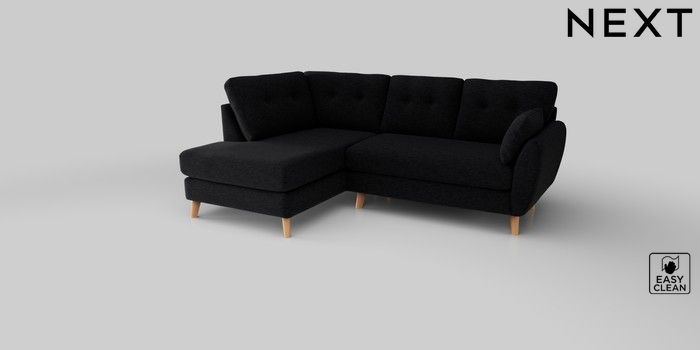 6.12.1 Buy Wilson Buttoned Back Medium Corner Chaise - Left Hand Fine Chenille Easy Clean Black Retro Tapered - Light from the Next UK online shop Click here to use our accessible website