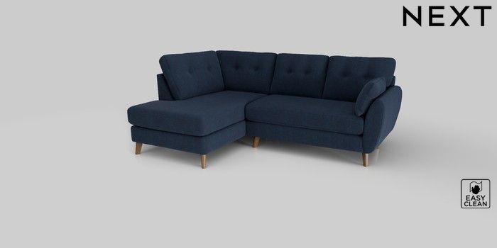 6.12.1 Buy Wilson Buttoned Back Medium Corner Chaise - Left Hand Fine Chenille Easy Clean Dark Navy Blue Retro Tapered - Mid from the Next UK online shop Click here to use our accessible website