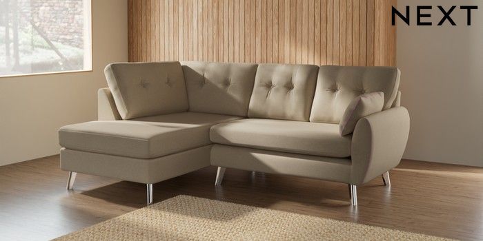 7.2.10 Buy Wilson Buttoned Back Medium Corner Chaise - Left Hand Natural Mix Light Natural Metal Tapered - Chrome from the Next UK online shop Click here to use our accessible website