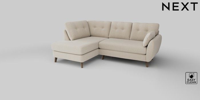 6.12.1 Buy Wilson Buttoned Back Medium Corner Chaise - Left Hand Fine Chenille Easy Clean Oyster Retro Tapered - Mid from the Next UK online shop Click here to use our accessible website