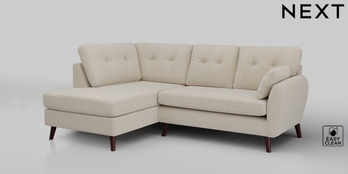 6.12.1 Buy Wilson Buttoned Back Medium Corner Chaise - Left Hand Fine Chenille Easy Clean Oyster Retro Tapered - Dark Brown from the Next UK online shop Click here to use our accessible website