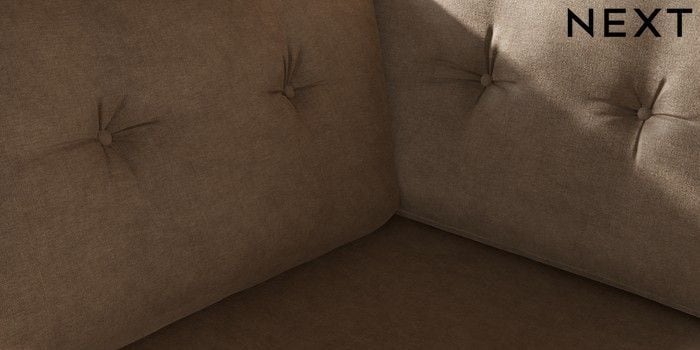 7.3.1 Buy Wilson Buttoned Back Medium Corner Chaise - Left Hand Luxe Chenille Mid Camel Beige Metal Tapered - Chrome from the Next UK online shop
