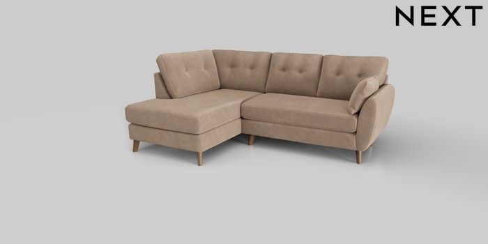 6.12.1 Buy Wilson Buttoned Back Medium Corner Chaise - Left Hand Luxe Chenille Mid Natural Retro Tapered - Mid from the Next UK online shop Click here to use our accessible website