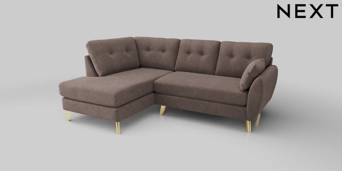 6.12.1 Buy Wilson Buttoned Back Medium Corner Chaise - Left Hand Luxe Chenille Mink Brown Metal Tapered - Gold from the Next UK online shop Click here to use our accessible website