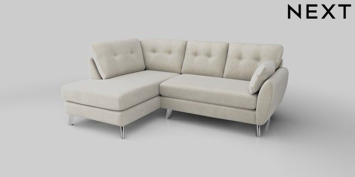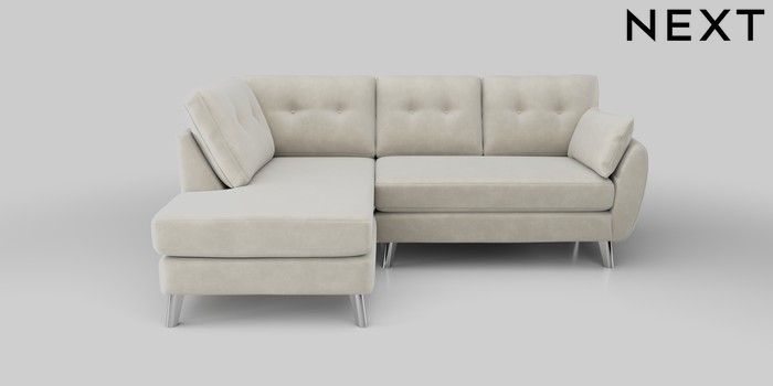 7.0.3 Buy Wilson Buttoned Back Medium Corner Chaise - Left Hand Luxe Chenille Oyster Metal Tapered - Chrome from the Next UK online shop Click here to use our accessible website