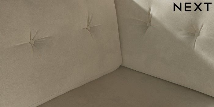 7.3.8 Buy Wilson Buttoned Back Medium Corner Chaise - Left Hand Luxe Chenille Oyster Metal Tapered - Chrome from the Next UK online shop