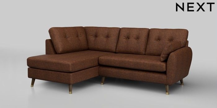 6.12.1 Buy Wilson Buttoned Back Medium Corner Chaise - Left Hand Monza Faux Leather Easy Clean Chestnut Brown Low Retro Tapered Metal Cap - Mid from the Next UK online shop Click here to use our accessible website