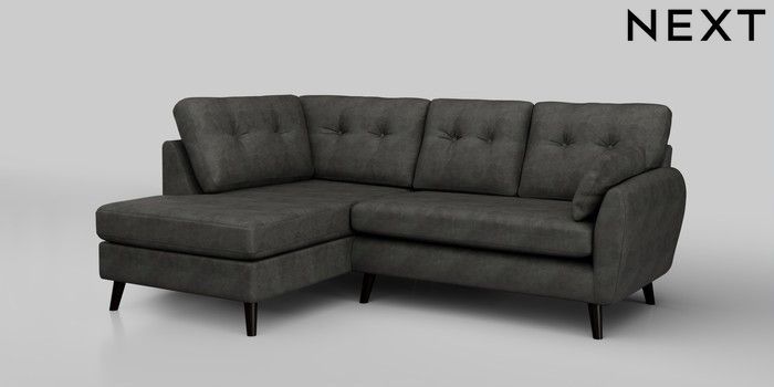 6.12.1 Buy Wilson Buttoned Back Medium Corner Chaise - Left Hand Monza Faux Leather Easy Clean Dark Grey Retro Tapered - Dark from the Next UK online shop Click here to use our accessible website