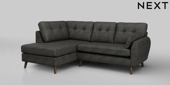 6.12.1 Buy Wilson Buttoned Back Medium Corner Chaise - Left Hand Monza Faux Leather Easy Clean Dark Grey Retro Tapered - Mid from the Next UK online shop Click here to use our accessible website