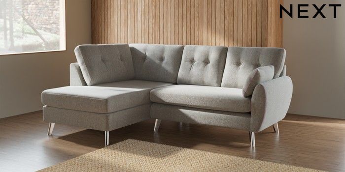 7.2.6 Buy Wilson Buttoned Back Medium Corner Chaise - Left Hand Multi Weave Light Blue Metal Tapered - Chrome from the Next UK online shop Click here to use our accessible website
