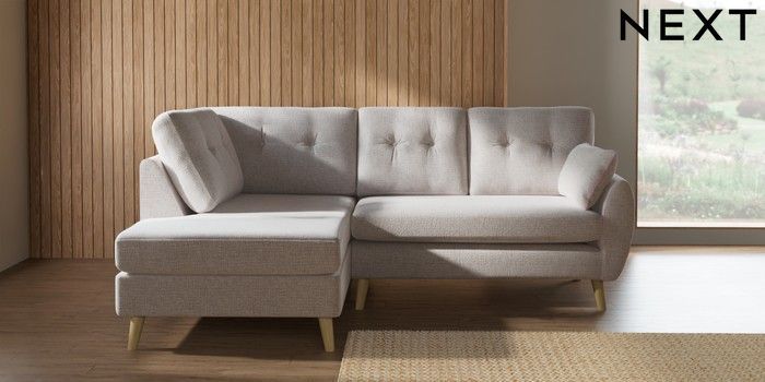 7.3.1 Buy Wilson Buttoned Back Medium Corner Chaise - Left Hand Multi Weave Oyster Retro Tapered - Light from the Next UK online shop