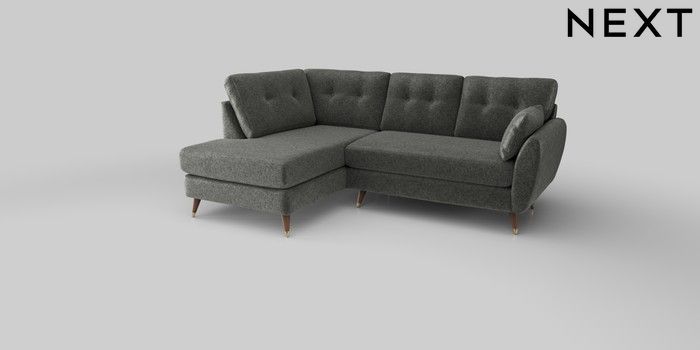 6.12.1 Buy Wilson Buttoned Back Medium Corner Chaise - Left Hand Plush Chenille Dark Grey Low Retro Tapered Metal Cap - Mid from the Next UK online shop Click here to use our accessible website
