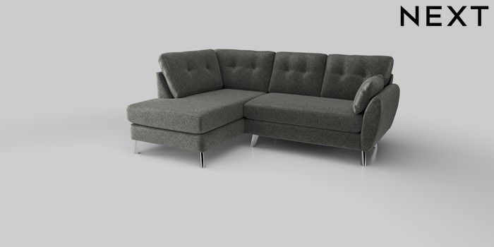 6.12.1 Buy Wilson Buttoned Back Medium Corner Chaise - Left Hand Plush Chenille Dark Grey Metal Tapered - Chrome from the Next UK online shop Click here to use our accessible website