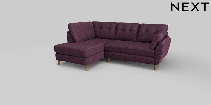 6.12.1 Buy Wilson Buttoned Back Medium Corner Chaise - Left Hand Plush Chenille Dark Plum Purple Retro Tapered - Mid from the Next UK online shop Click here to use our accessible website