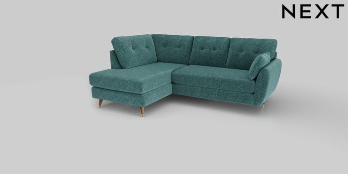 6.12.1 Buy Wilson Buttoned Back Medium Corner Chaise - Left Hand Plush Chenille Dark Teal Green Low Retro Tapered Metal Cap - Mid from the Next UK online shop Click here to use our accessible website