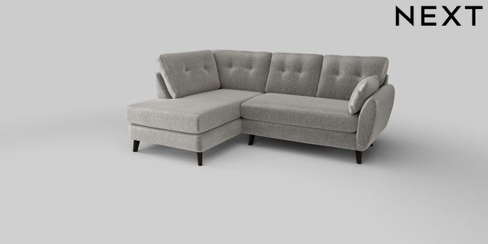 6.12.1 Buy Wilson Buttoned Back Medium Corner Chaise - Left Hand Plush Chenille Light Grey Retro Tapered - Dark from the Next UK online shop Click here to use our accessible website
