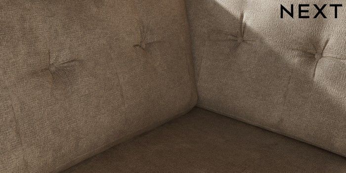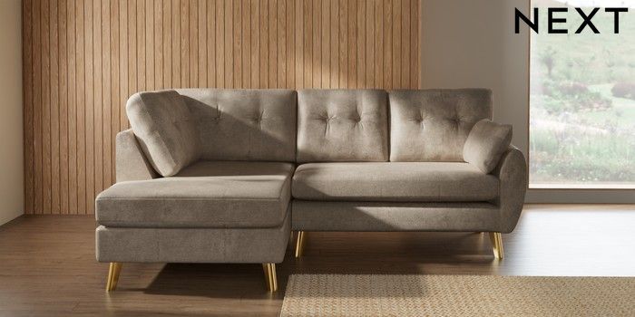 7.3.1 Buy Wilson Buttoned Back Medium Corner Chaise - Left Hand Plush Chenille Light Natural Metal Tapered - Gold from the Next UK online shop