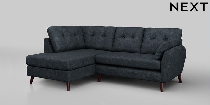 6.12.1 Buy Wilson Buttoned Back Medium Corner Chaise - Left Hand Plush Chenille Slate Blue Retro Tapered - Dark Brown from the Next UK online shop Click here to use our accessible website