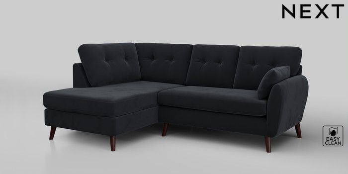 6.12.1 Buy Wilson Buttoned Back Medium Corner Chaise - Left Hand Plush Velvet Easy Clean Charcoal Grey Retro Tapered - Dark Brown from the Next UK online shop Click here to use our accessible website
