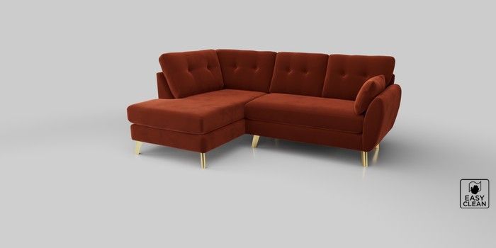 6.12.1 Buy Wilson Buttoned Back Medium Corner Chaise - Left Hand Plush Velvet Easy Clean Ginger Orange Metal Tapered - Gold from the Next UK online shop Click here to use our accessible website
