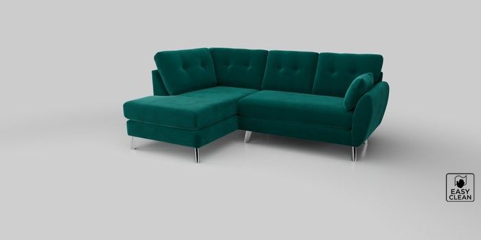 6.12.1 Buy Wilson Buttoned Back Medium Corner Chaise - Left Hand Plush Velvet Easy Clean Juniper Green Metal Tapered - Chrome from the Next UK online shop Click here to use our accessible website