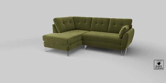 6.12.1 Buy Wilson Buttoned Back Medium Corner Chaise - Left Hand Plush Velvet Easy Clean Mid Olive Green Metal Tapered - Chrome from the Next UK online shop Click here to use our accessible website