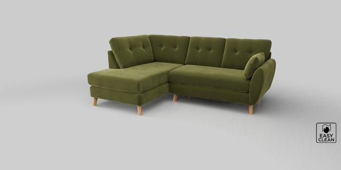 6.12.1 Buy Wilson Buttoned Back Medium Corner Chaise - Left Hand Plush Velvet Easy Clean Mid Olive Green Retro Tapered - Light from the Next UK online shop Click here to use our accessible website