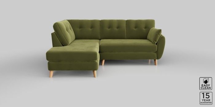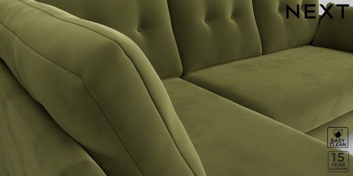 6.11.4 Buy Wilson Buttoned Back Medium Corner Chaise - Left Hand Plush Velvet Easy Clean Mid Olive Green Retro Tapered - Light from the Next UK online shop Click here to use our accessible website