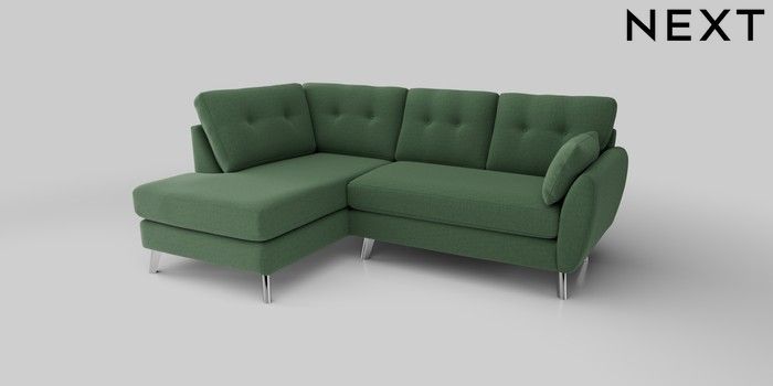 6.12.1 Buy Wilson Buttoned Back Medium Corner Chaise - Left Hand Relaxed Linen Look Dark Green Metal Tapered - Chrome from the Next UK online shop Click here to use our accessible website