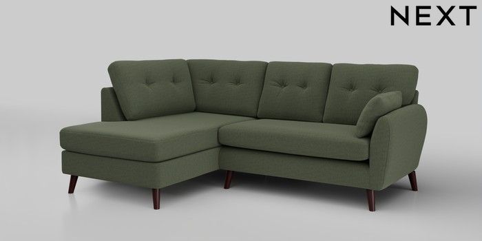 6.12.1 Buy Wilson Buttoned Back Medium Corner Chaise - Left Hand Relaxed Linen Look Dark Green Retro Tapered - Dark Brown from the Next UK online shop Click here to use our accessible website