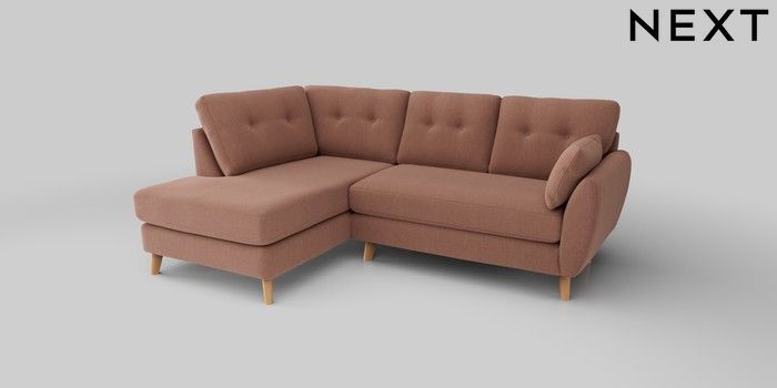 6.12.1 Buy Wilson Buttoned Back Medium Corner Chaise - Left Hand Relaxed Linen Look Light Rust Brown Retro Tapered - Light from the Next UK online shop Click here to use our accessible website