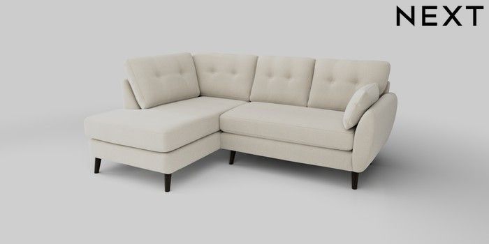 6.12.1 Buy Wilson Buttoned Back Medium Corner Chaise - Left Hand Relaxed Linen Look Oyster Retro Tapered - Dark from the Next UK online shop Click here to use our accessible website