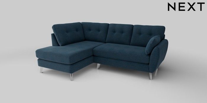 6.12.1 Buy Wilson Buttoned Back Medium Corner Chaise - Left Hand Ripple Chenille Dark Blue Metal Tapered - Chrome from the Next UK online shop Click here to use our accessible website