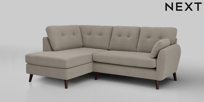 6.12.1 Buy Wilson Buttoned Back Medium Corner Chaise - Left Hand Ripple Chenille Light Natural Retro Tapered - Dark Brown from the Next UK online shop Click here to use our accessible website