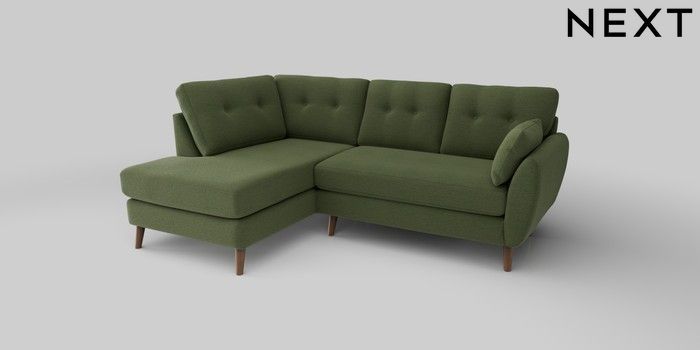 6.12.1 Buy Wilson Buttoned Back Medium Corner Chaise - Left Hand Ripple Chenille Mid Moss Green Retro Tapered - Mid from the Next UK online shop Click here to use our accessible website