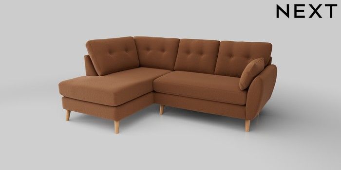 6.12.1 Buy Wilson Buttoned Back Medium Corner Chaise - Left Hand Ripple Chenille Mid Rust Brown Retro Tapered - Light from the Next UK online shop Click here to use our accessible website