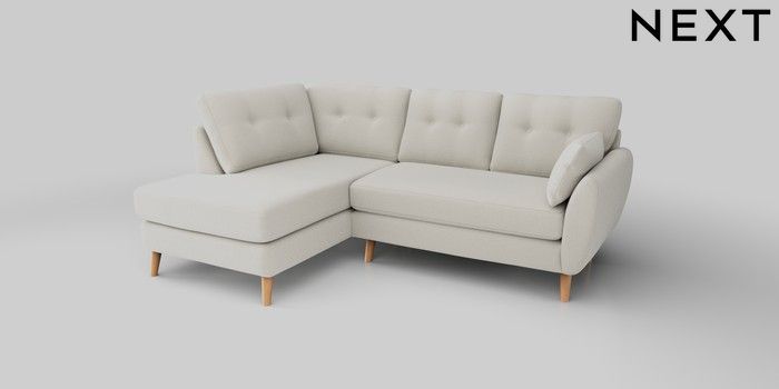 6.12.1 Buy Wilson Buttoned Back Medium Corner Chaise - Left Hand Ripple Chenille Oyster Retro Tapered - Light from the Next UK online shop Click here to use our accessible website