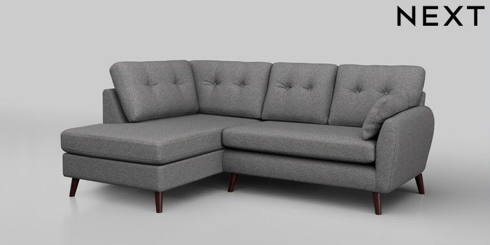 6.12.1 Buy Wilson Buttoned Back Medium Corner Chaise - Left Hand Studio Chenille Mid Grey Retro Tapered - Dark Brown from the Next UK online shop Click here to use our accessible website