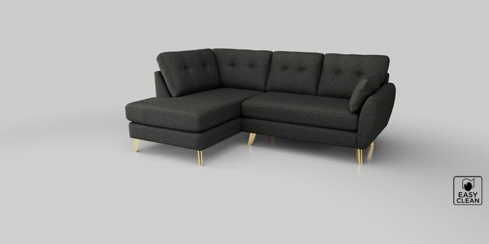 6.12.1 Buy Wilson Buttoned Back Medium Corner Chaise - Left Hand Tweedy Blend Easy Clean Charcoal Grey Metal Tapered - Gold from the Next UK online shop Click here to use our accessible website