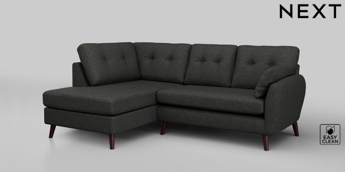 6.12.1 Buy Wilson Buttoned Back Medium Corner Chaise - Left Hand Tweedy Blend Easy Clean Charcoal Grey Retro Tapered - Dark Brown from the Next UK online shop Click here to use our accessible website