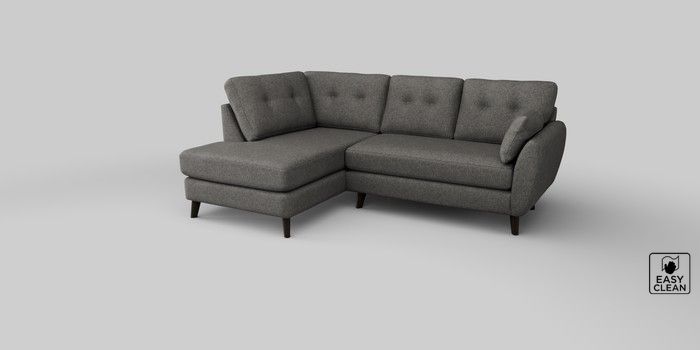 6.12.1 Buy Wilson Buttoned Back Medium Corner Chaise - Left Hand Tweedy Blend Easy Clean Dark Grey Retro Tapered - Dark from the Next UK online shop Click here to use our accessible website