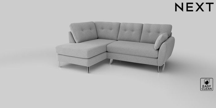 6.12.1 Buy Wilson Buttoned Back Medium Corner Chaise - Left Hand Tweedy Blend Easy Clean Light Silver Grey Metal Tapered - Chrome from the Next UK online shop Click here to use our accessible website