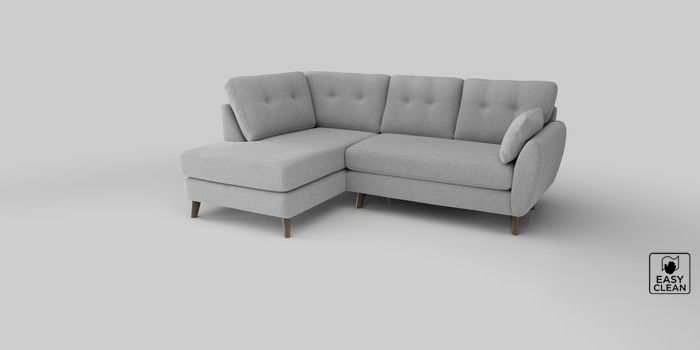 6.12.1 Buy Wilson Buttoned Back Medium Corner Chaise - Left Hand Tweedy Blend Easy Clean Light Silver Grey Retro Tapered - Mid from the Next UK online shop Click here to use our accessible website