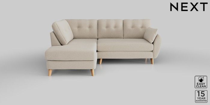 6.10.9 Buy Wilson Buttoned Back Medium Corner Chaise - Left Hand Tweedy Blend Easy Clean Oyster Retro Tapered - Light from the Next UK online shop Click here to use our accessible website